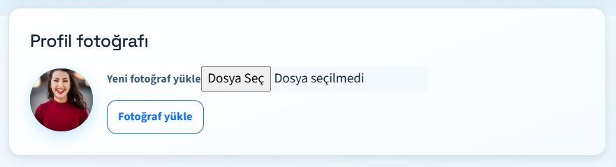 Profil fotoğrafınız otomatik olarak uygun boyutlara küçültülür. Desteklenen formatlar: JPEG, PNG.