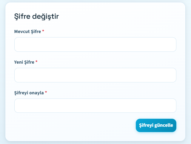 - Profil sayfanızdaki "Şifre Değiştir" bölümüne gidin